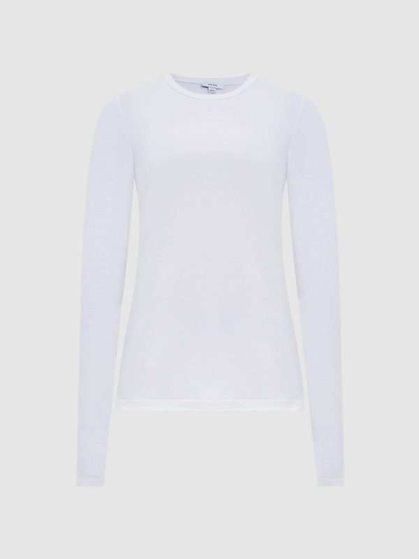 Indulge yourself in the soft feel of the white Bebe crew-neck top. It’s cut from a cotton-elastane blend for supreme, day-long comfort. Layer under signature knitwear when the weather cools, or style with a blazer and heels for an occasion edit.