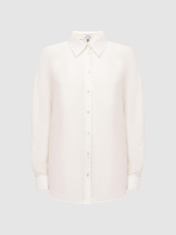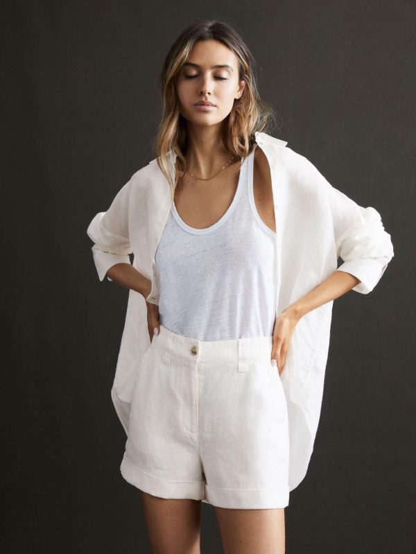 Classic shapes return to the forefront of our styling directive. Take the Ellis long-sleeve shirt in ivory, crafted from a linen-blend and fitted with traditional elements like a point collar and button closure. Its oversized fit lends a modern guise to any edit. Throw on and fasten as desired. Pair with linen separates and leather trainers.
