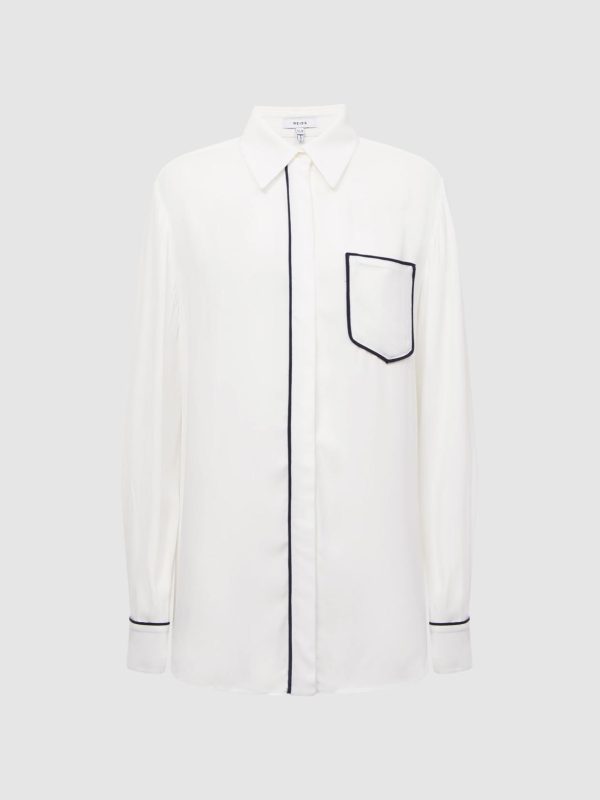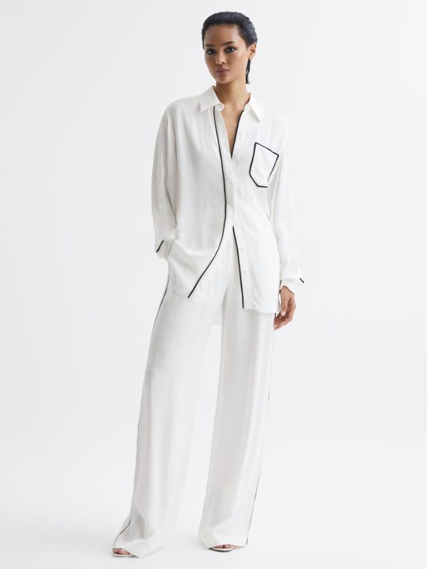 The Gina relaxed-fit shirt is a chic addition to your day-to-night wardrobe. It’s crafted from a lightweight fabrication and designed with contrasting stripe detail for an effortlessly stylish mood. Button as required and pair with the matching trousers. Choose heels for a refreshing take on monochrome dressing.