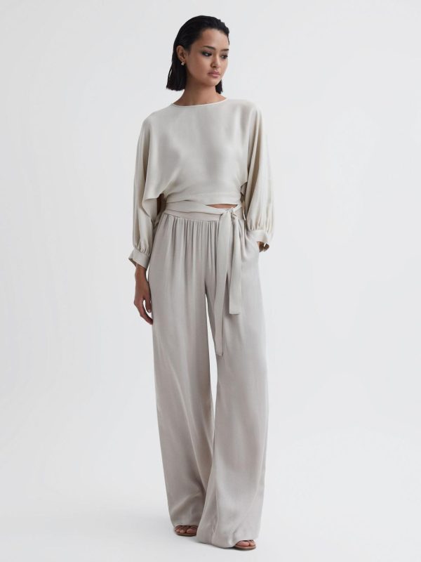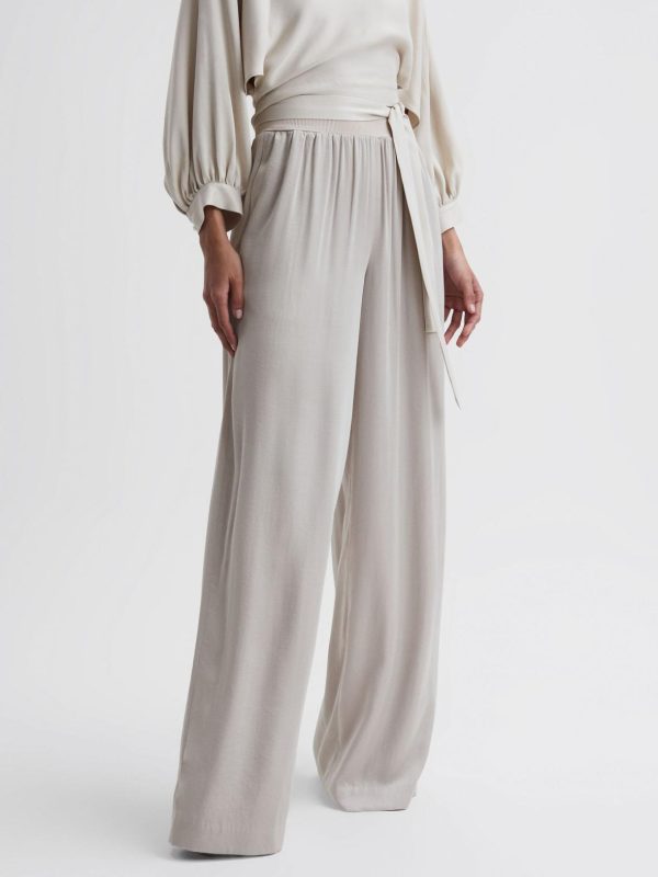 Reiss Trousers | Women Imogen Wide Leg Elasticated Waist Trousers Neutral