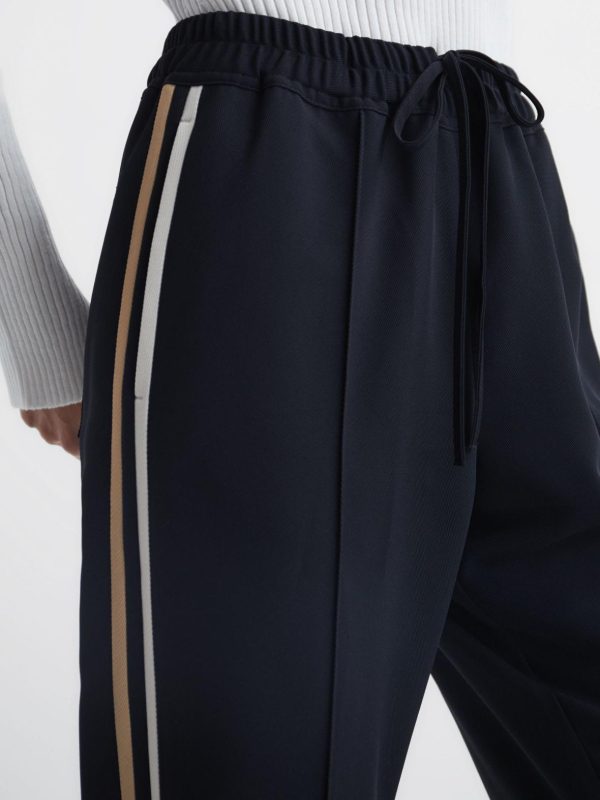 Choose the Odell – sleek, tapered navy trousers that embrace laid-back spirit. They’re designed to sit high on the waist for a flattering fit and are cut with pressed creases and side slip pockets. Wear them with a blazer and trainers for casual cool.
