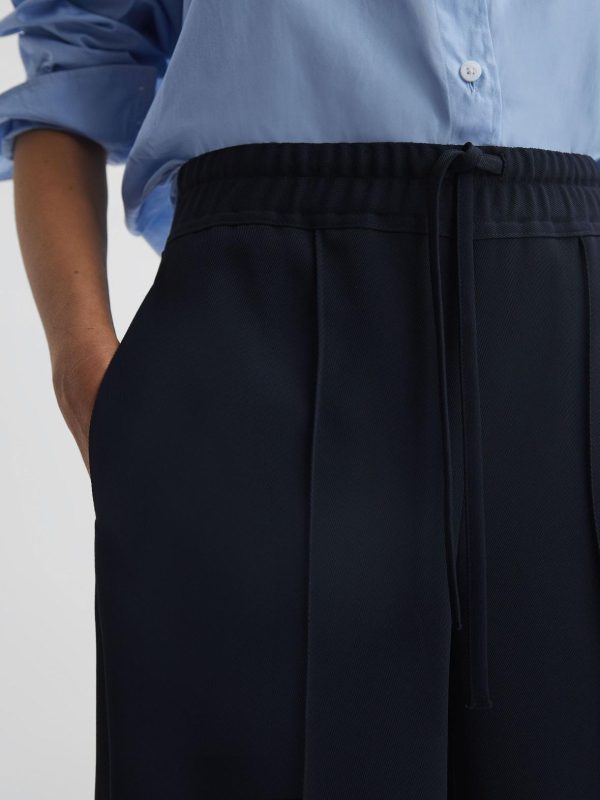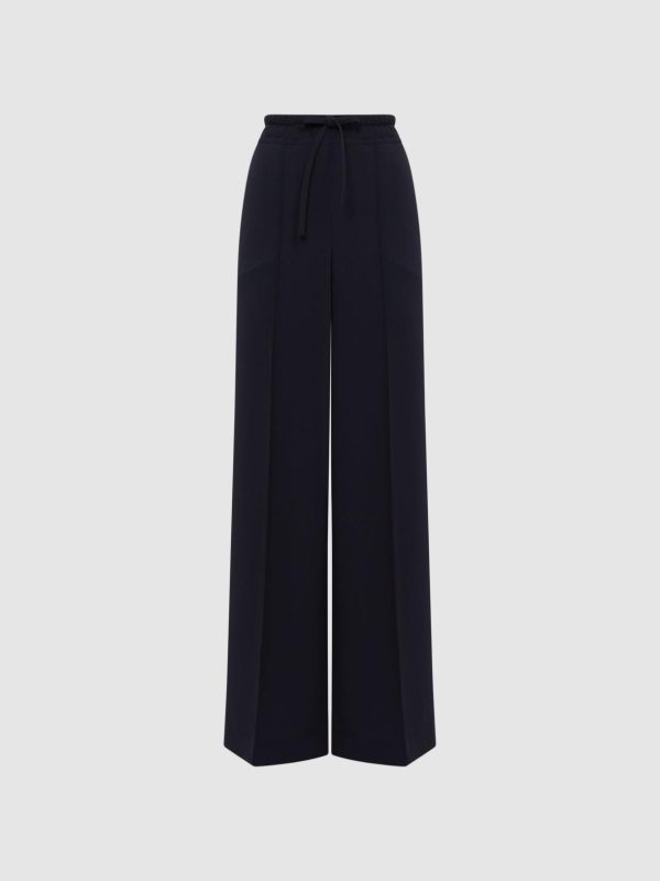 Reiss Trousers | Women Rosalyn Wide Leg Drawstring Trousers Navy